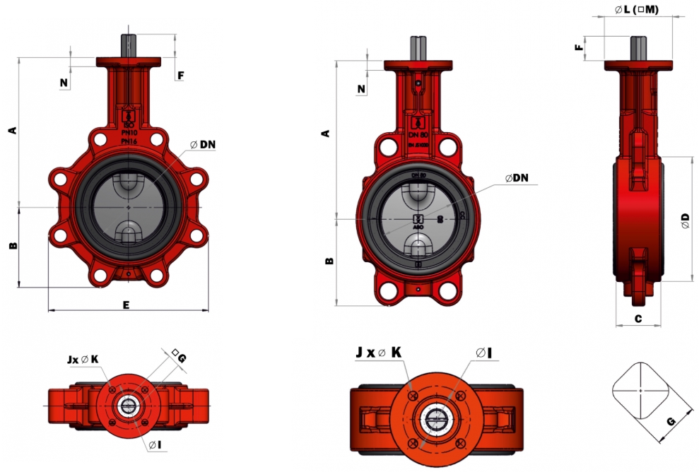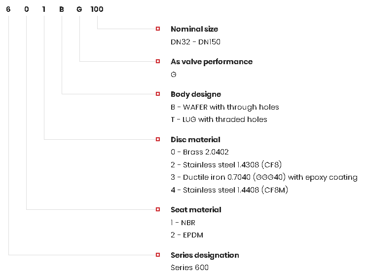 | Газовая версия | Да (DN32-150, 6 бар макс., NBR сиденье, 0 °C ÷ +80 °C) |